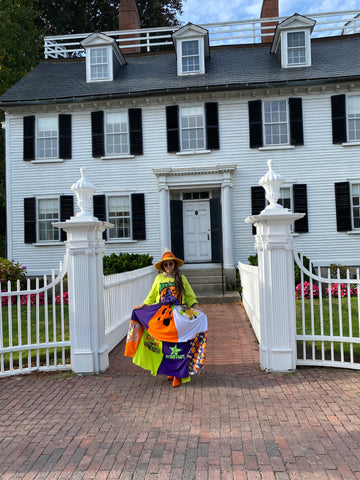 Our one-of-a-kind Patchwork Halloween dress is a spooky dream made from reworked vintage tees and festive fabrics. Featuring bold panels of purple, slime green, pumpkin orange, and classic Halloween prints, this dress is a walking celebration of all things spooky season. From playful pumpkin patterns to nostalgic graphic tee details, every section tells its own story.